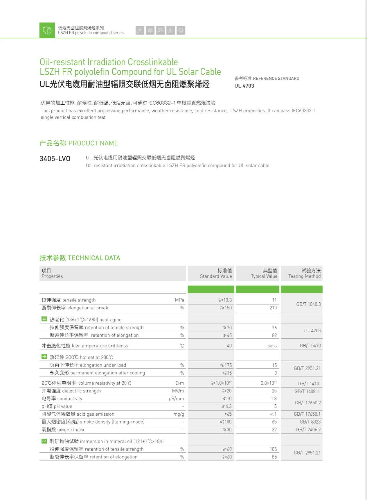 UL光伏电缆用耐油型辐照交联低烟无卤阻燃聚烯烃