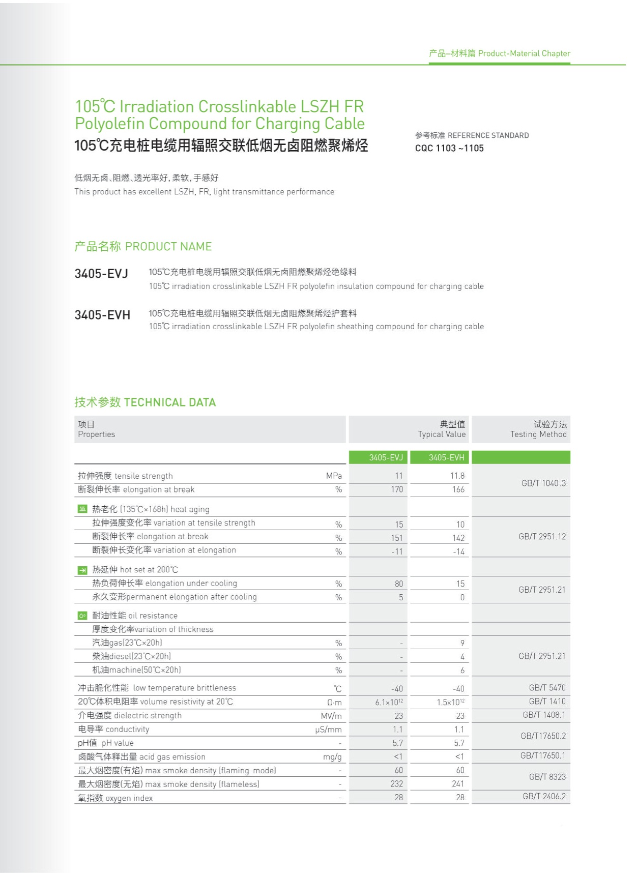 105℃充电桩电缆用辐照交联低烟无卤阻燃聚烯烃